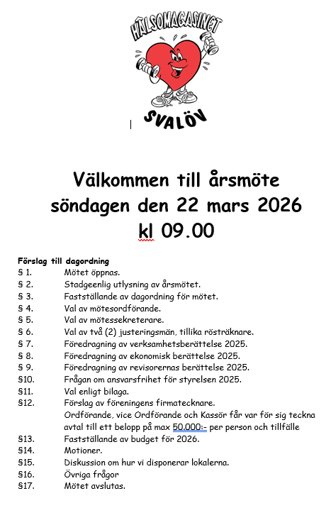 Välkommen till Årsmöte 2026-03-22