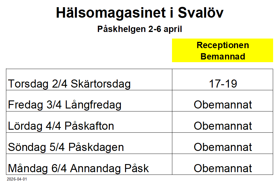 Våra ordinarie bemannade tider ser du här: Bemanning Receptionen